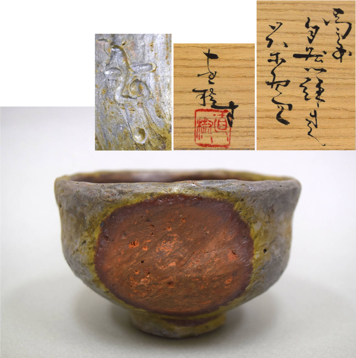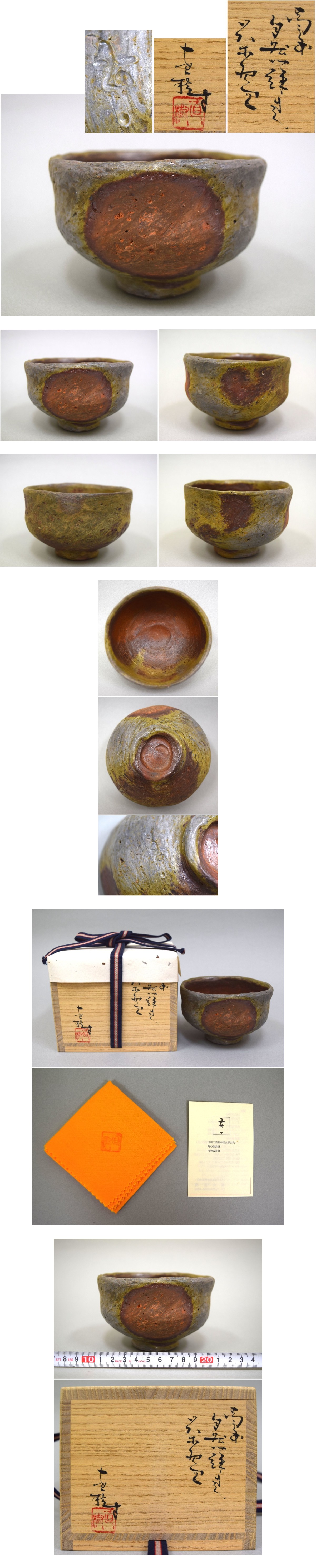- 真作保証 横山直樹「備前 自然練込茶碗」共箱 共布 栞 師:川端文男