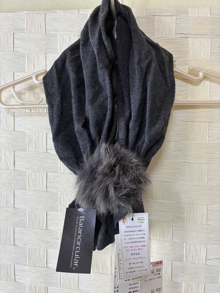 - 【新品未使用品】 マグネットキャンディ マフラー ファー リアルファー フォックス グレー 毛皮 婦人 レディース 日本製