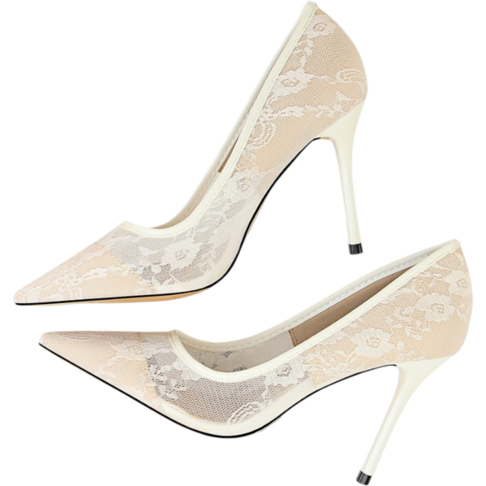> ☆ ホワイト ☆ 39(24.5cm) ☆ レース メッシュ パンプス レースパンプス パンプス ハイヒール メッシュパンプス パーティーパンプス