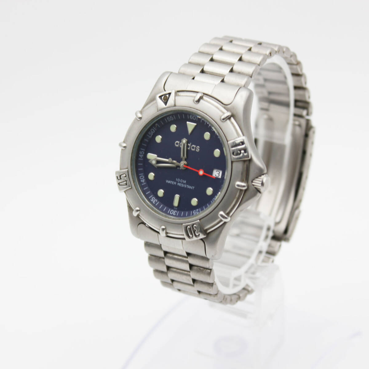 > W251023-25 adidas アディダス 10-0010D メンズ腕時計 クォーツ デイト ジャンク 文字盤ネイビー シルバー