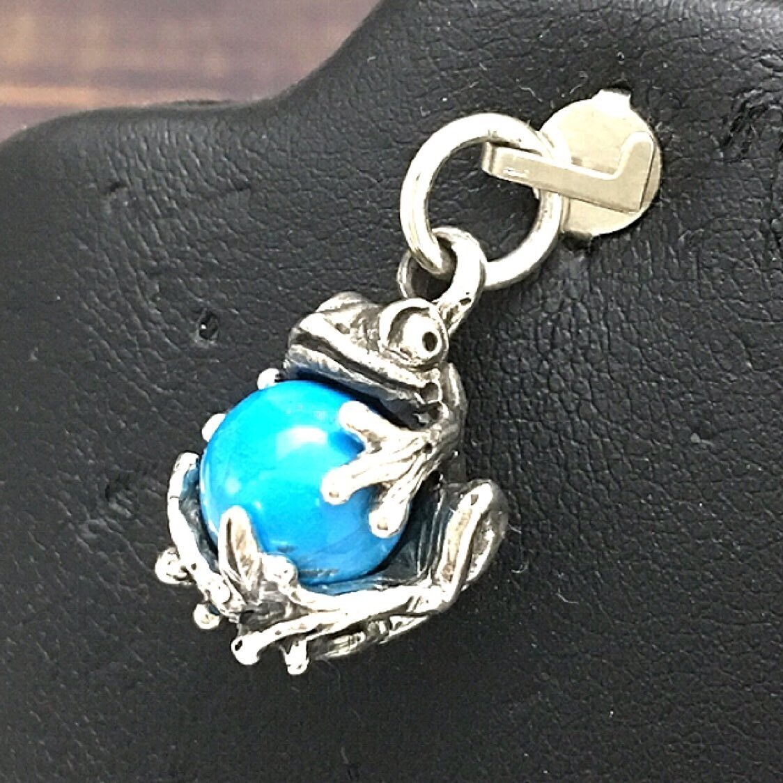 - 閉店処分【守護幸運金運】丸ターコイズ丸カエル★純銀本物シルバー925ネックレストップ
