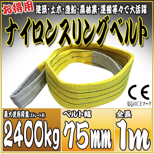 > スリングベルト 1m 幅75mm 使用荷重2400kg 2.4t 吊りベルト ベルトスリング [ナイロンスリング 吊上げ ロープ 牽引 運搬]