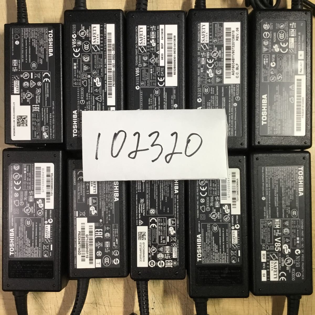 > 【送料無料】(102320E) 10個セット TOSHIBA AC Adapter SADP-65KBなど 19V-3.42A 純正品 ACアダプター メガネケーブル付 中古品
