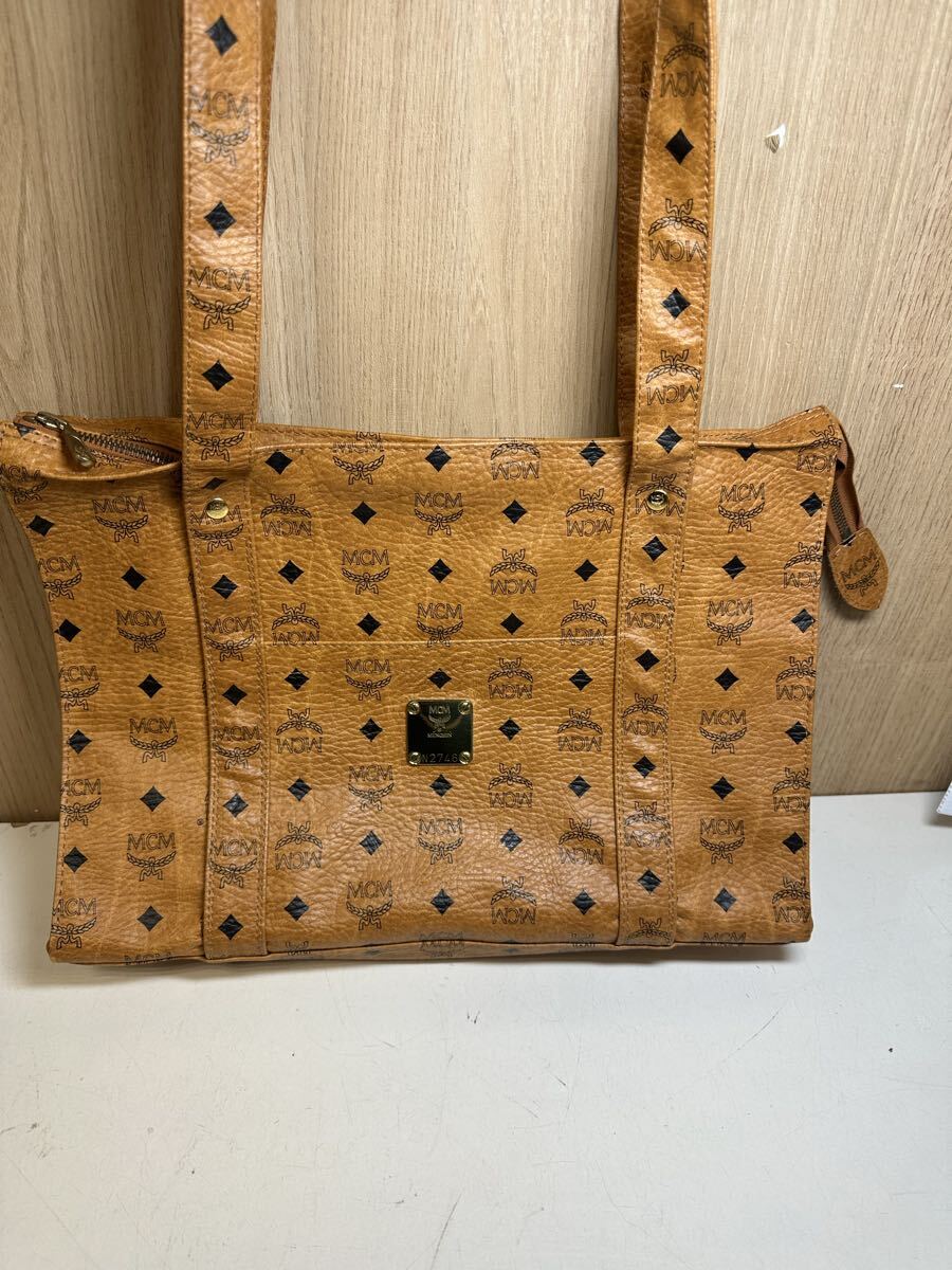 - Y10043 MCM エムシーエム ロゴグラム トートバッグ ヴィセトス柄 肩掛け レザー キャメル