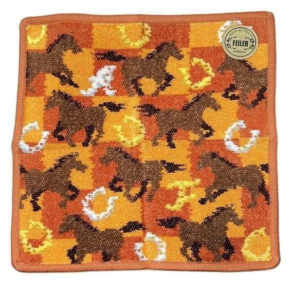 > フェイラー FEILER - コットン オレンジ×ブラウン×マルチ ハンドタオル/馬/UNITED ARROWS 美品 小物