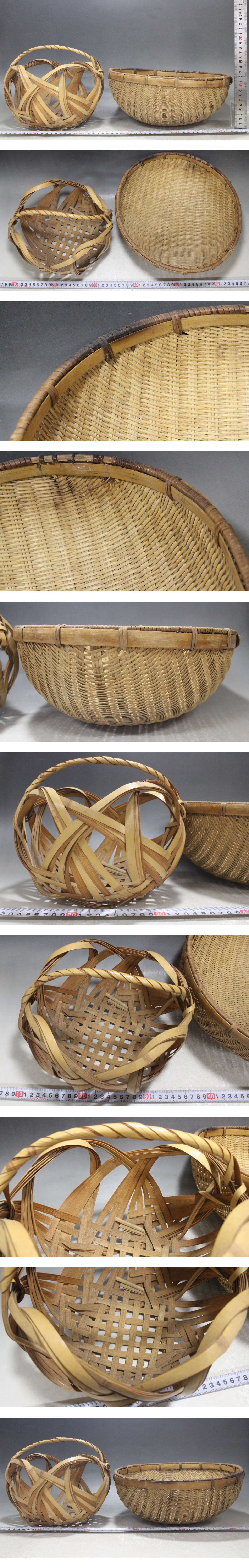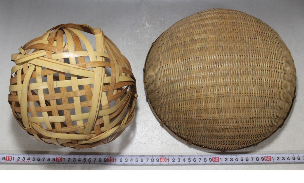 - 竹籠 2点セット (右133g/左157g) 時代物 笊ザルざる 竹篭竹細工工芸品 ツ56