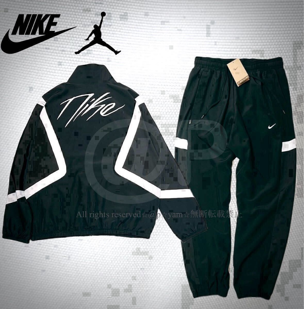 - 新品 NIKE ナイキ ウーブン 上下セット 薄手 軽量 ナイロン ジャケット パンツ セットアップ 黒 ブラック [ 2XLサイズ ]