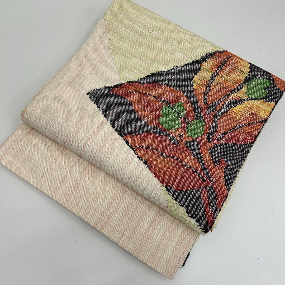 - 名古屋帯 美しい草模様 紬 八寸 着物 正絹 W-5413