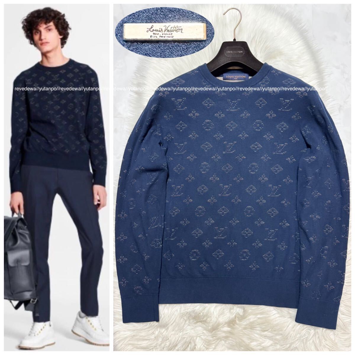 > 本物 ルイヴィトン マーブル モノグラム ロゴパッチ付き ニット セーター M ダークネイビー マルチカラー Louis Vuitton