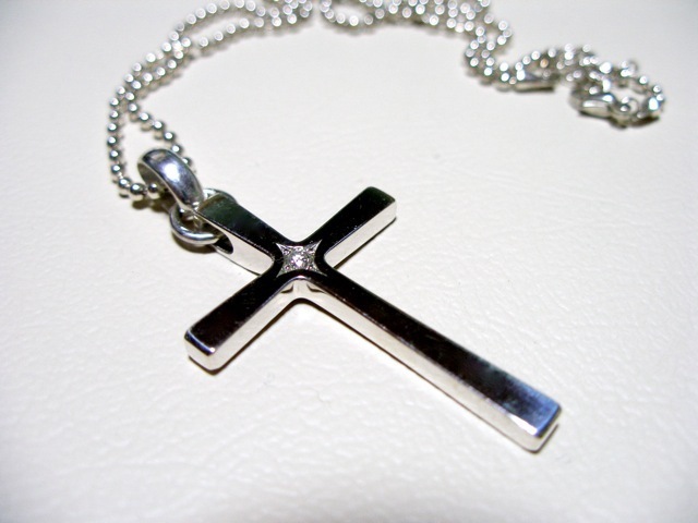 - 仁尾彫金『一つ星ダイヤプラチナクロス』ハンドメイド420