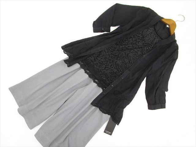 - 美品 as know as de base等 洗える ブラウス+カットソー+スカーチョ コーデ3点セット L相当 黒 花柄/黒 ラメ 花柄/灰 フェミニン系 50代~