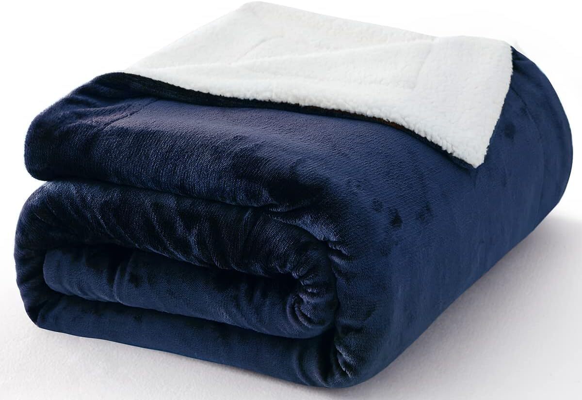 - S12★【残りわずか】ダブルサイズ 毛布 裏ボア 厚め毛布 冬用 ふわふわ あったか 180×200cm ネイビー