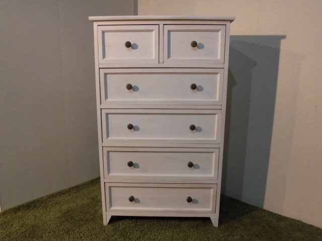- 【送料無料】即決(展示品・新品)★天然木アンティーク調★シャビー★ハイチェスト5段