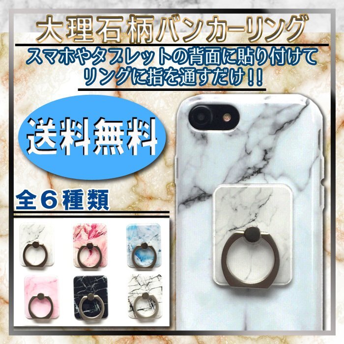 - 送料無料 バンカーリング [大理石柄] ♪ リング スタンド 大理石 ホールドリング スマホ Xperia iPhone 11 Pro AQUOS Arrows 落下防止