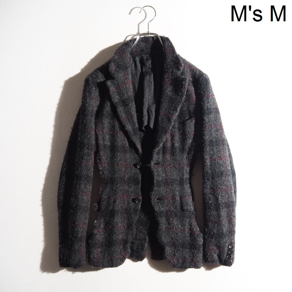 > P8586P ▼COMME des GARCONS HOMME PLUS コムデギャルソン ▼ 24AW 縮絨 カットアウト ウール ジャケット グレーチェック M 秋冬 rb mks
