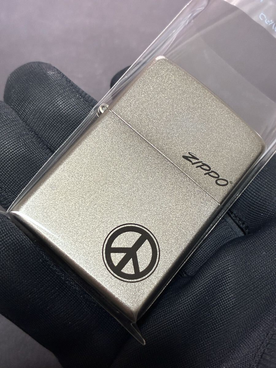- zippo ピースマーク 筆記体 前面加工 シルバー 2016年製 シルバーインナー 2015年製
