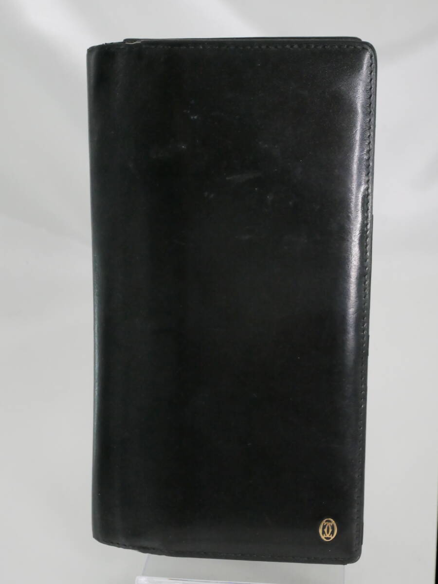 - 本物 カルティエ パシャ 二つ折り 長財布 財布 レザー ブラック ロゴ ゴールド