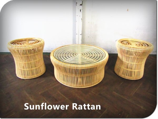 > ■展示品■Sunflower Rattan/サンフラワーラタン■BREEZE/ブリーズ■T280ND×C429ND/ラタン/センターテーブル・スツール3点セット/eee6229m