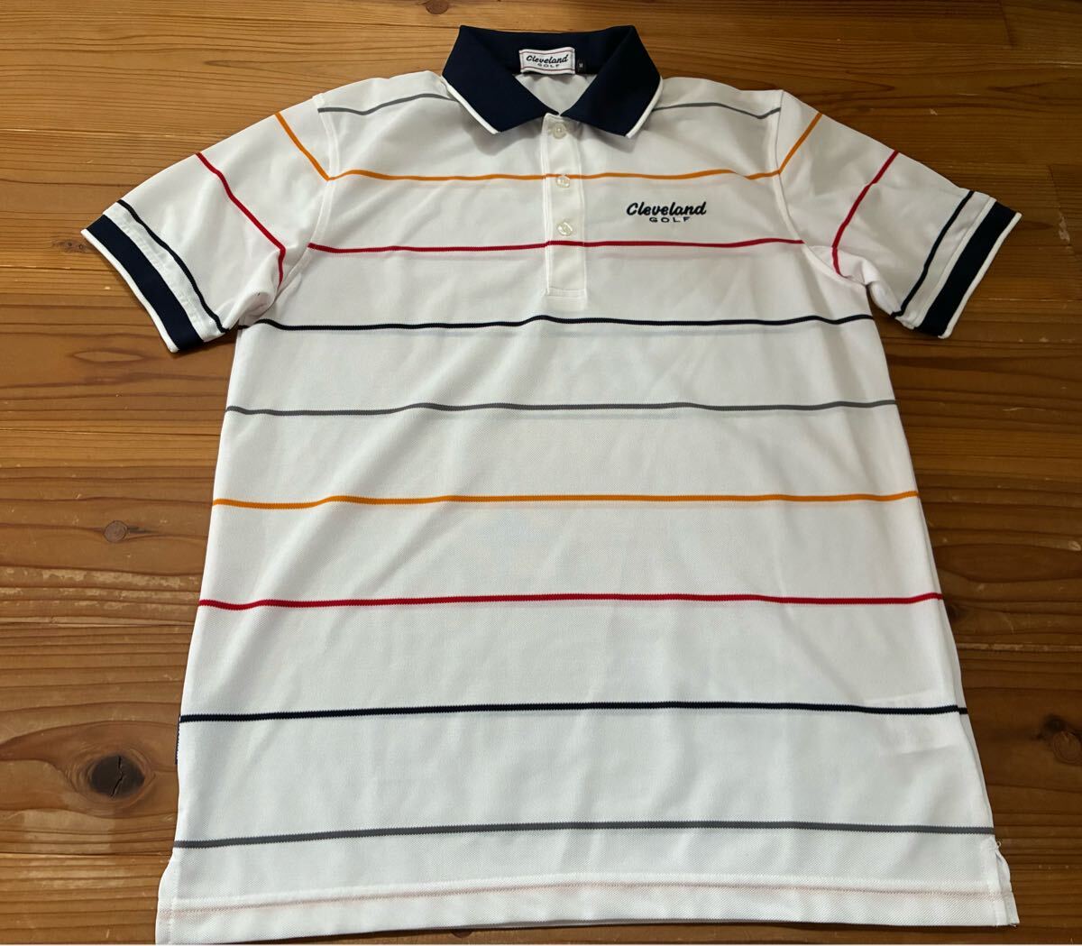 > 送料込み!! Cleaveland 半袖ポロシャツ M クリーブランド 美品 ボーダー GOLF ゴルフウェアー 半袖シャツ ホワイト