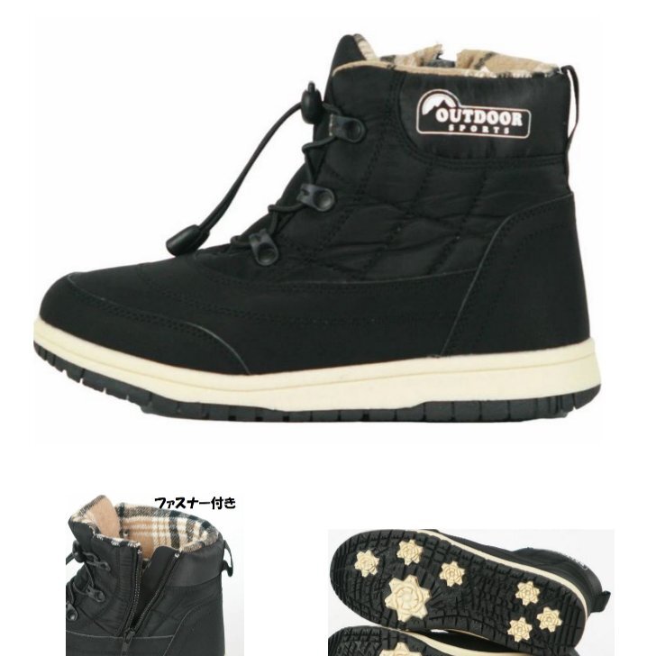 - 立ったままスルッと履ける ハンズフリー 防水 スノートレ 24.5 OUTDOOR SPOOTS FKR1301 黒 婦人 レディース 防寒 ハーフ ショートブーツ