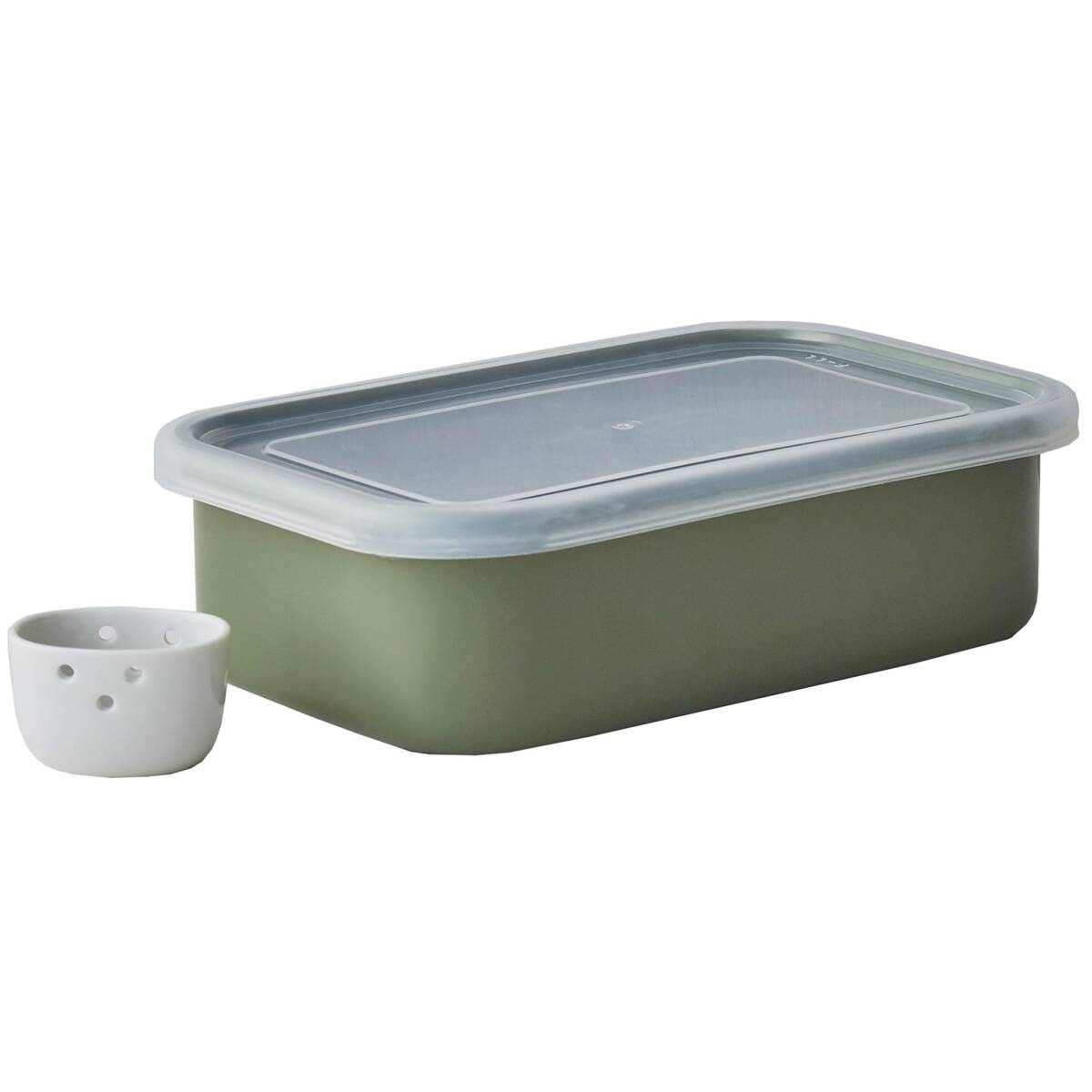 - 野田琺瑯(Nodahoro) ぬか漬け 小町 冷蔵庫 用 保存容器 蓋 水取 水抜 器 付き オリーブ 日本製