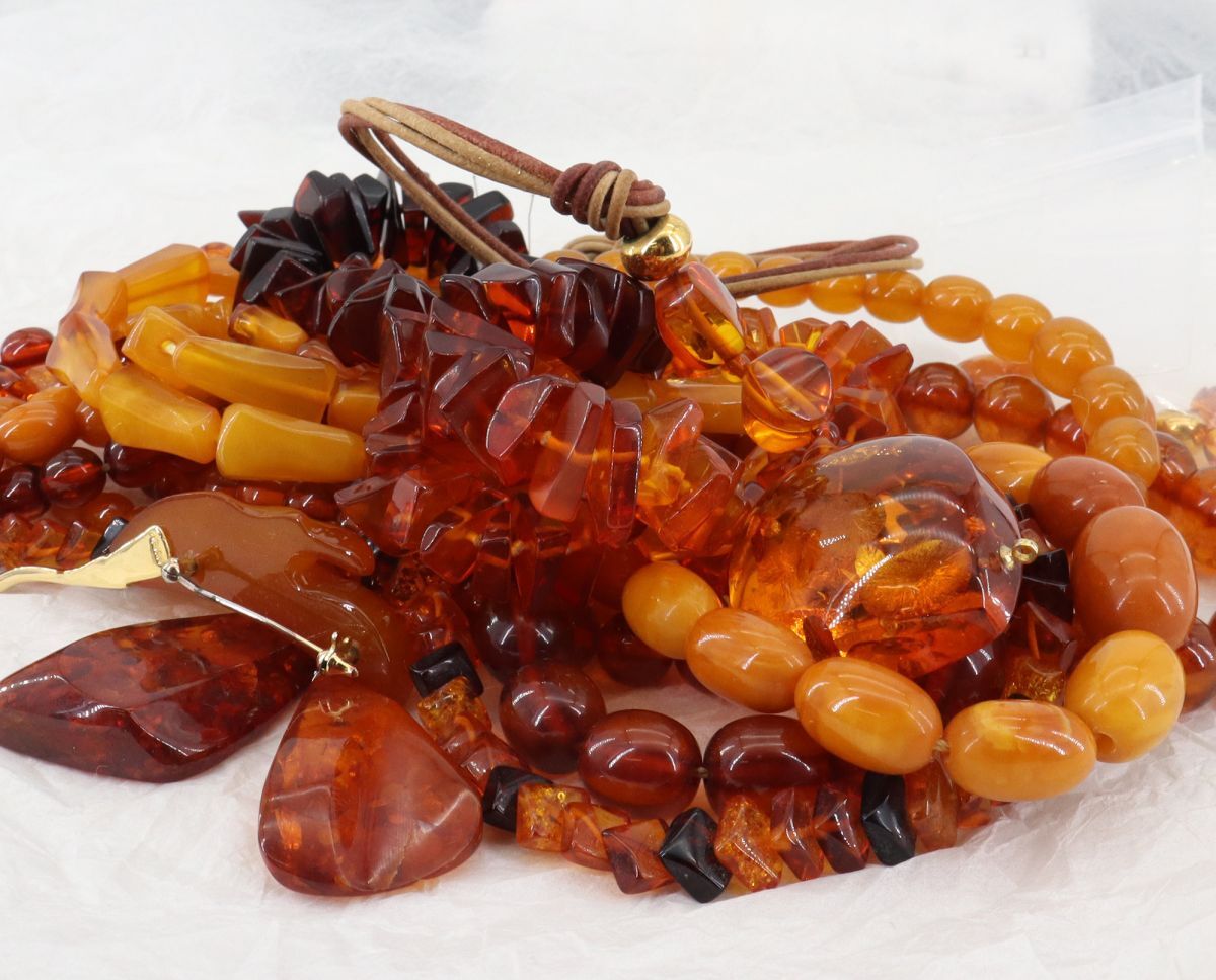 - e4993【琥珀】コハク アンバー アクセサリー おまとめ ネックレス ブローチ トップなど