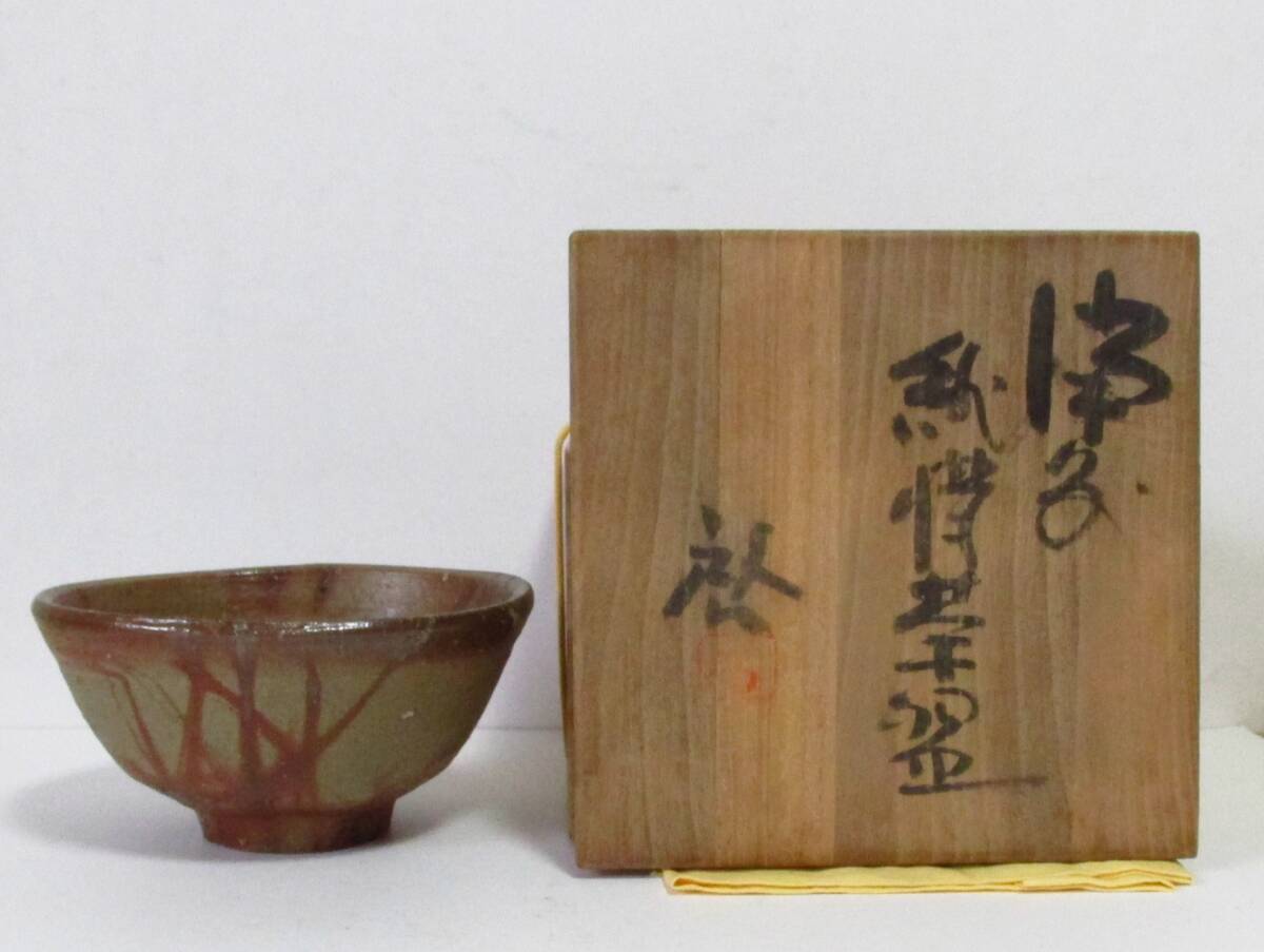 - ○清雅○ 人間国宝・藤原啓 備前焼 茶碗 四方桟共箱 緋襷の秀作
