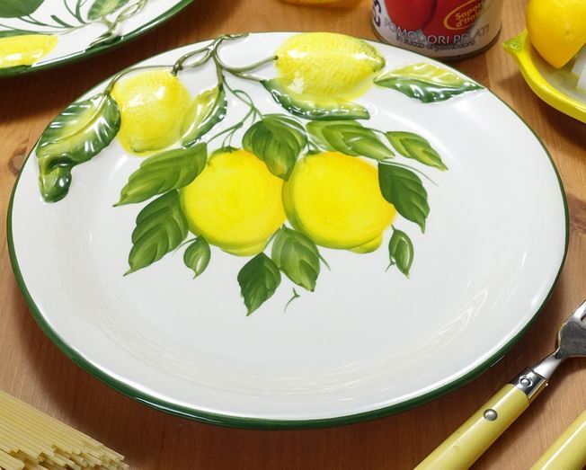 - イタリア製 輸入雑貨 ディナー皿 円形 26cm レモン リビングスタジオ 直輸入 カレー スパゲティ バッサーノ ハンドペイント bre-2461-26le