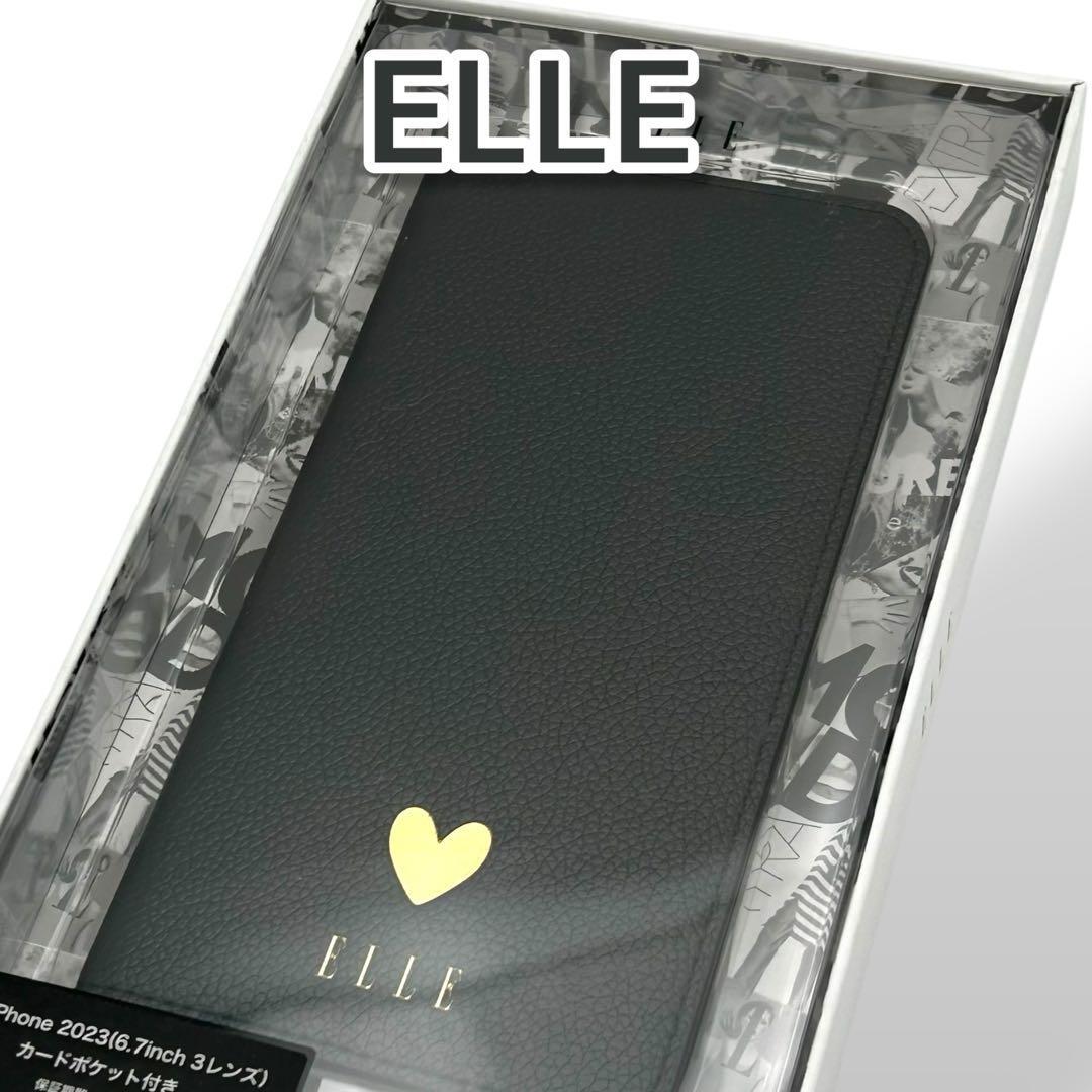 > 【新品未開封】ELLE エル iPhoneケース 手帳型 2023 6.7インチ 6.7inch 3レンズ カードポケット付き ブラック アイホーンケース