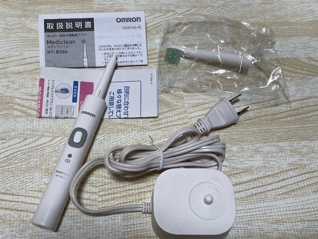 - オムロン音波式電動歯ブラシ★充電池式ホワイトHT-B304-W説明書つき<手みがきにないつるつる感らくらくハミガキ>ジャンク歯磨き
