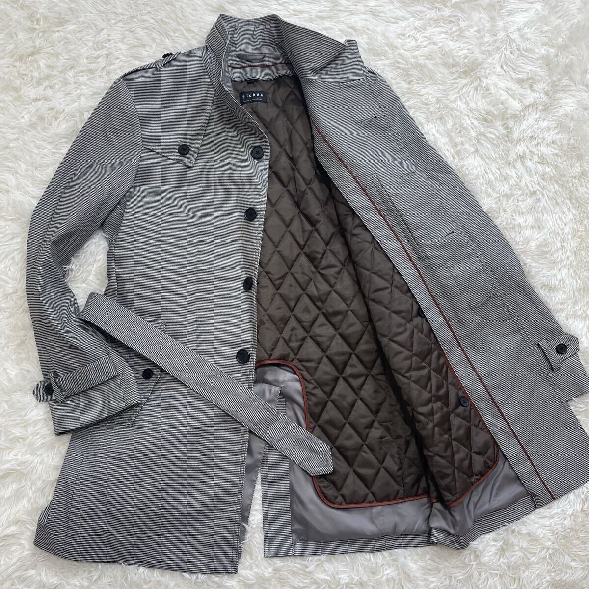 - 極美品 稀少XL 【圧巻の千鳥格子】 トレンチコート シングル 千鳥格子 LL ライナー付き ベルト付き ロングコート メンズ アウター グレー