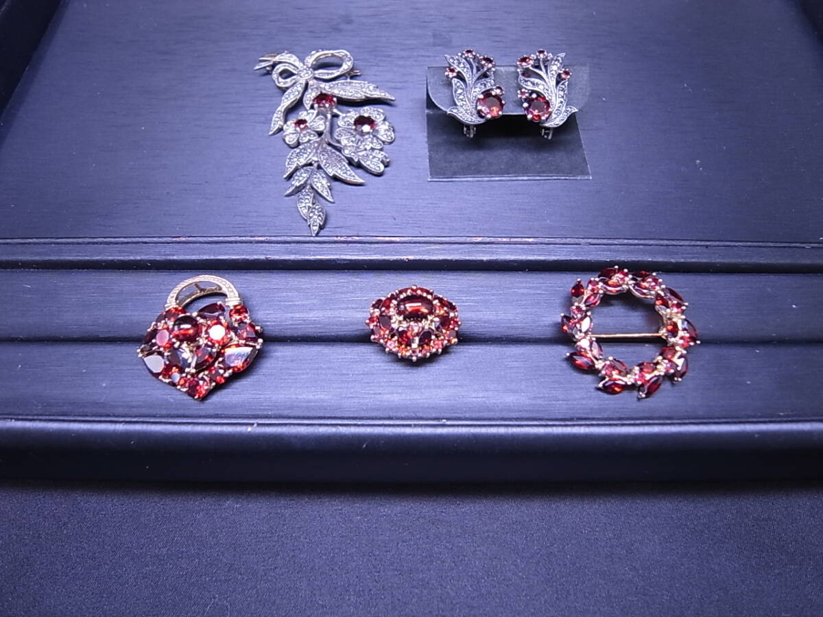 - ★☆Rokuzan ロクザン SV925 ガーネットアクセサリー3点セットおまけ付き ブローチ リング 碌山 アンティークスタイル☆★