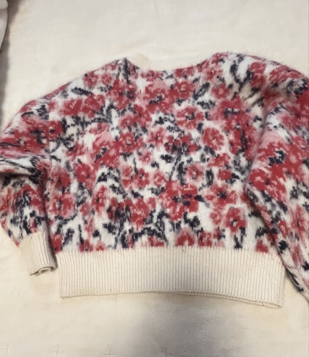 - ★SNIDEL(スナイデル)★羊毛 アンゴラ混 クールネック F(大き目)白地に花柄ジャガード織