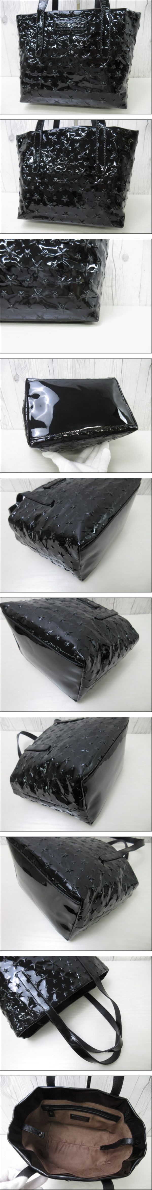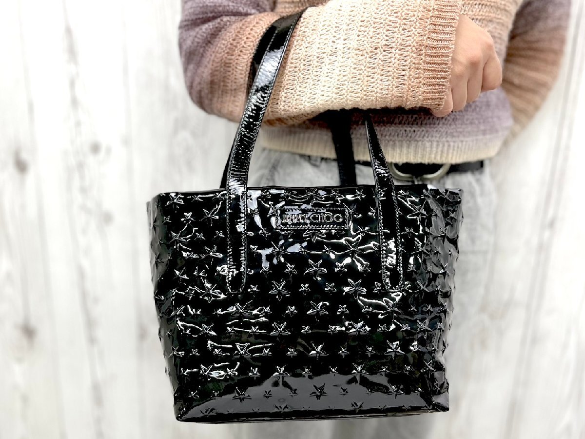 > 未使用展示品 JIMMY CHOO ジミーチュウ スターエンボス サラ シール有 トートバッグ ハンドバッグ バッグ パテントレザー 黒 91140