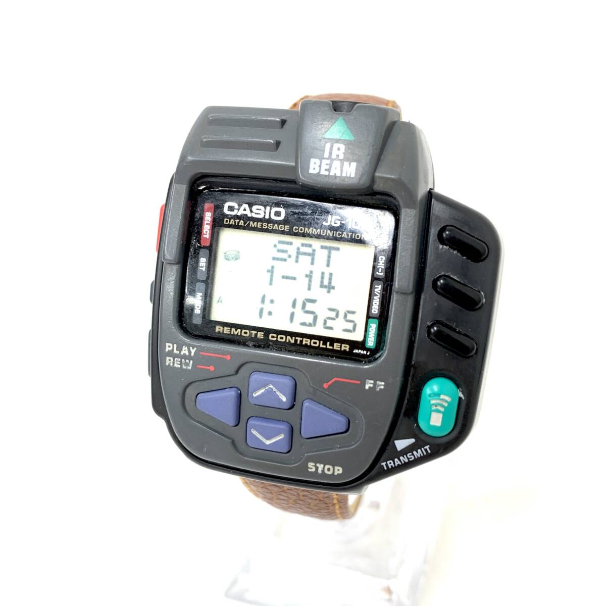 - Z1252△ 1円~ CASIO カシオ CYBERCROSS サイバークロス スーパー光通信ウォッチ JG-100 SS×革 QZ デジタル文字盤 メンズ 腕時計 稼働