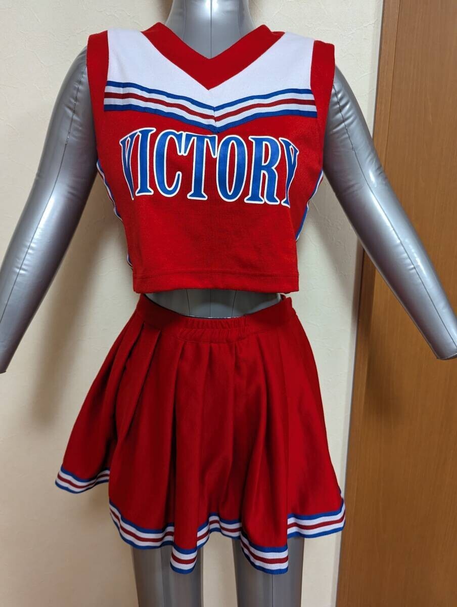 - VICTORY チアリーディング・チアダンスユニフォーム 赤/白 サイズM リボン、ポンポン付