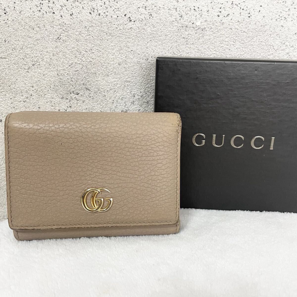 - 【贅沢品の極み】GUCCI グッチ 折財布 カードケース お札ケース コインケース マーモント レザー 本革 ベージュ ゴールド GG
