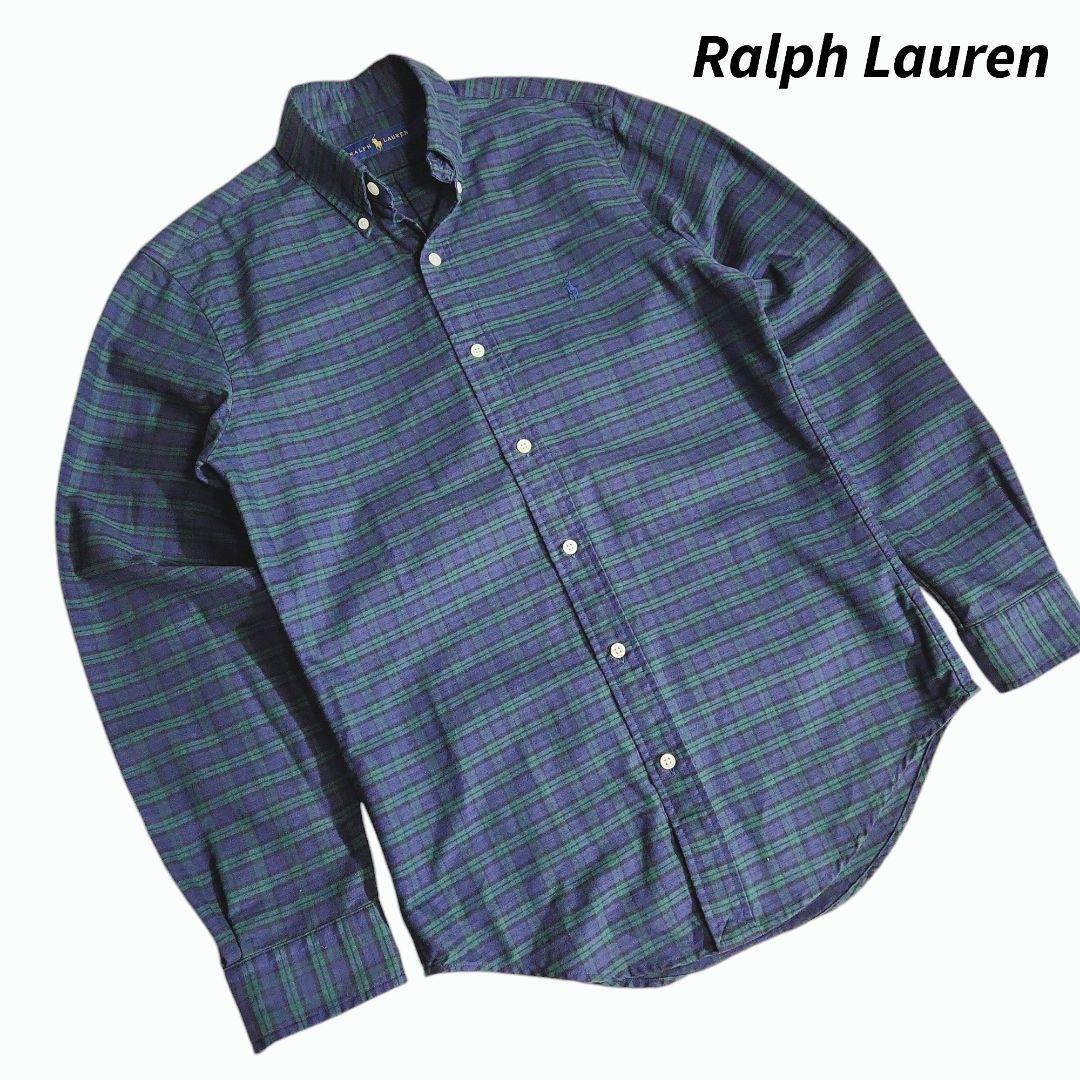 > Ralph Lauren ブラックウォッチ・ロゴ刺繍・ボタンダウン長袖シャツ 表記XS 実質S.Mサイズ チェック ブリティッシュ 83882