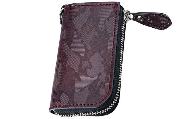 - M'z SPEED レザーマルチキーケース 本革 型押しレザー 光沢タイプ 迷彩ワインレッド