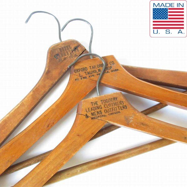 - 特殊形状 スペシャル ビンテージ ウッド ハンガー 3本セット アパレル 古着屋 開業 店舗什器 アンティーク D149-71-0056ZT