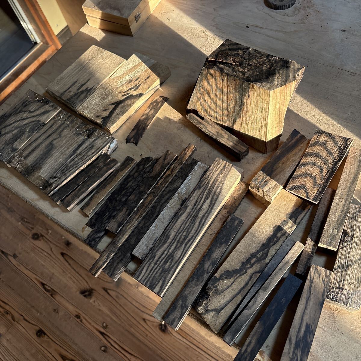- 黒柿 孔雀杢 端材セット 銘木 木材 無垢材 唐木 希少木 ペンブランク ナイフハンドル 端材