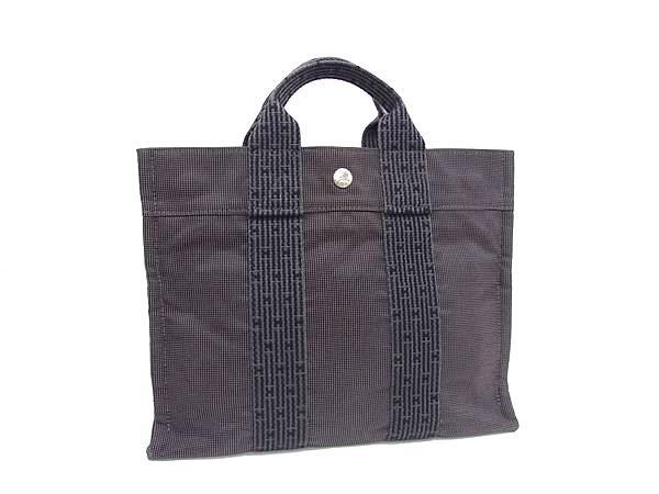 - 1円 ■美品■ HERMES エルメス エールラインPM キャンバス シルバー金具 ハンドバッグ トートバッグ メンズ レディース グレー系 GB2158