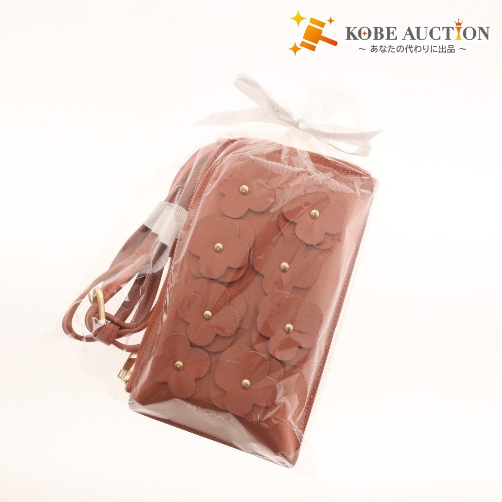 - ■ エムズグレイシー スマホショルダー ショルダーバッグ 394511 鞄 花モチーフ レディース レッド ブラウン系 タグ付き 新品 未使用