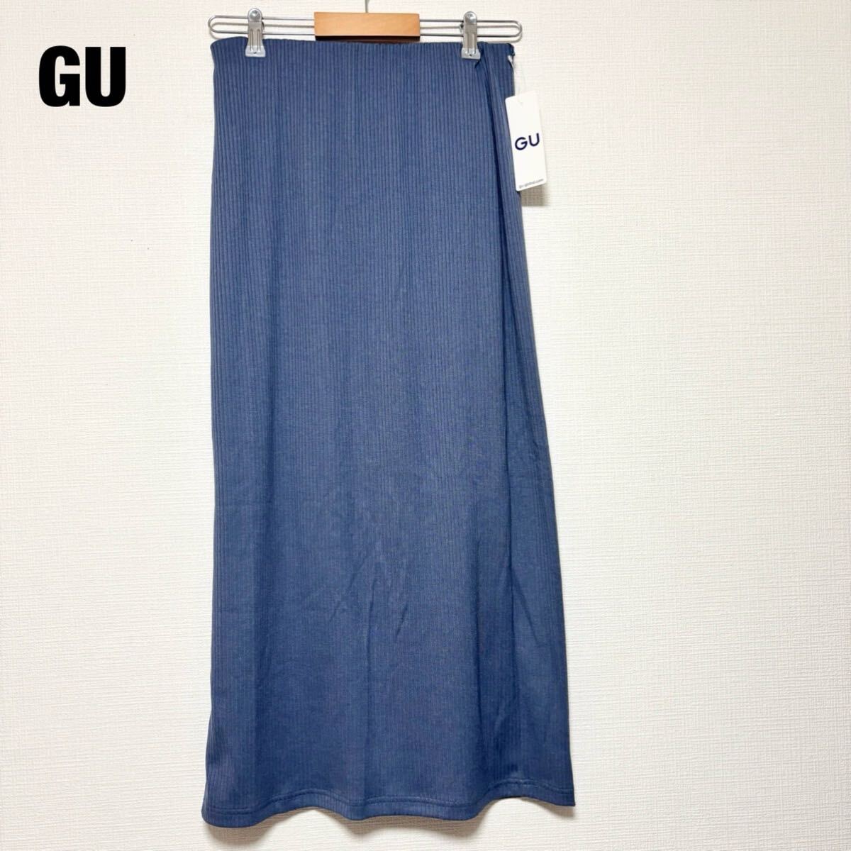 - 新品 タグ付き 未使用 GU ジーユー レディース リブナローミディスカート ロングスカート スカート ストレッチ ネイビー ブルー 紺 青 XL