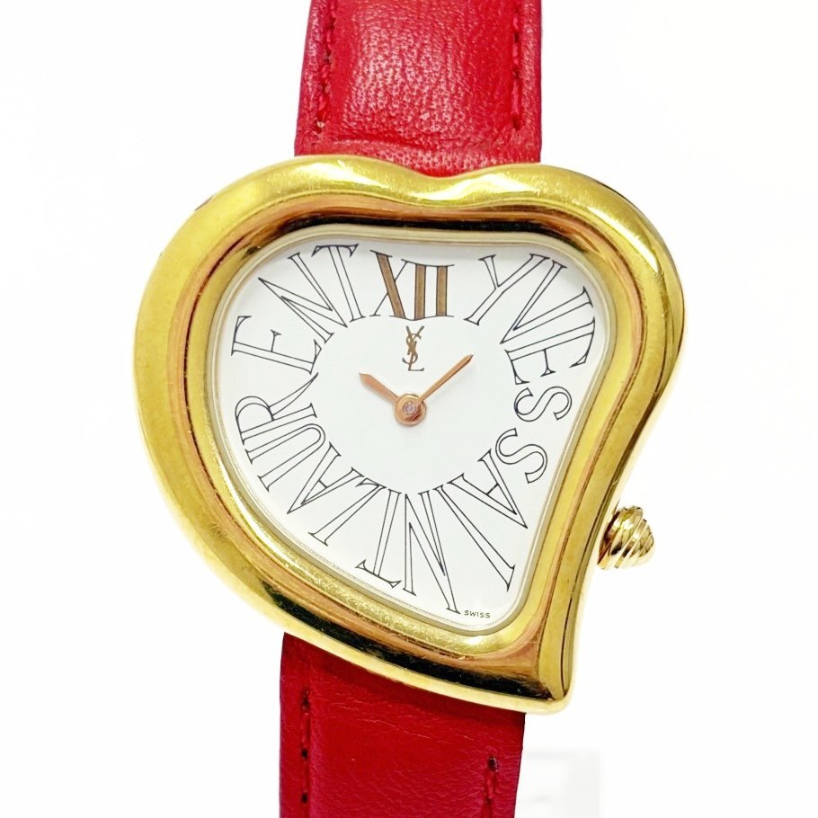 - 【1円スタート】YVES SAINT LAURENT イヴ・サンローラン ハート GP×SS ホワイト文字盤 クオーツ レディース腕時計 506914
