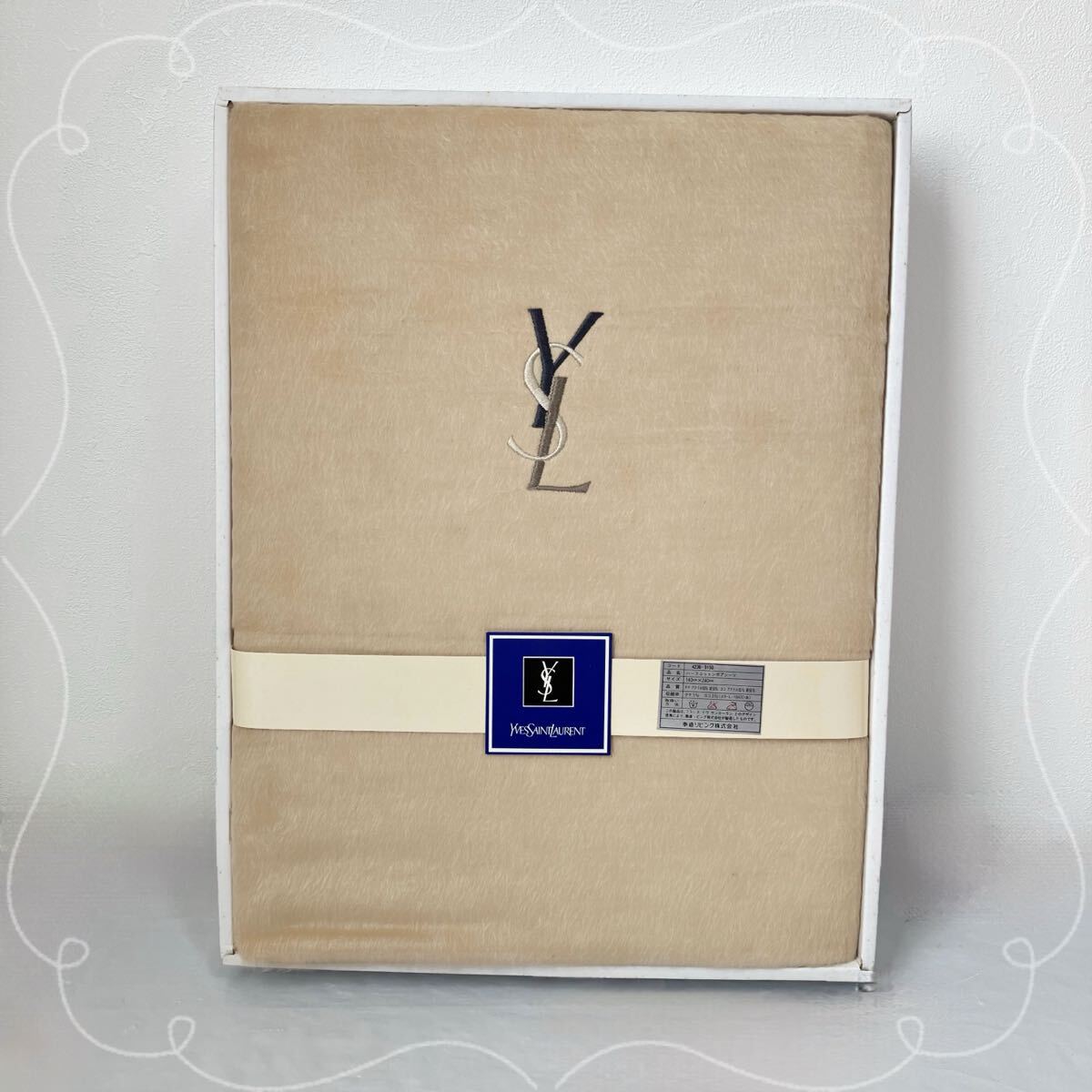 - TA■ 未使用 Yves Saint Laurent イヴサンローラン ハーフコットン ボアシーツ ベージュ 箱入り 140cm×240cm ロゴ刺繍 シーツ 寝具 冬 YSL