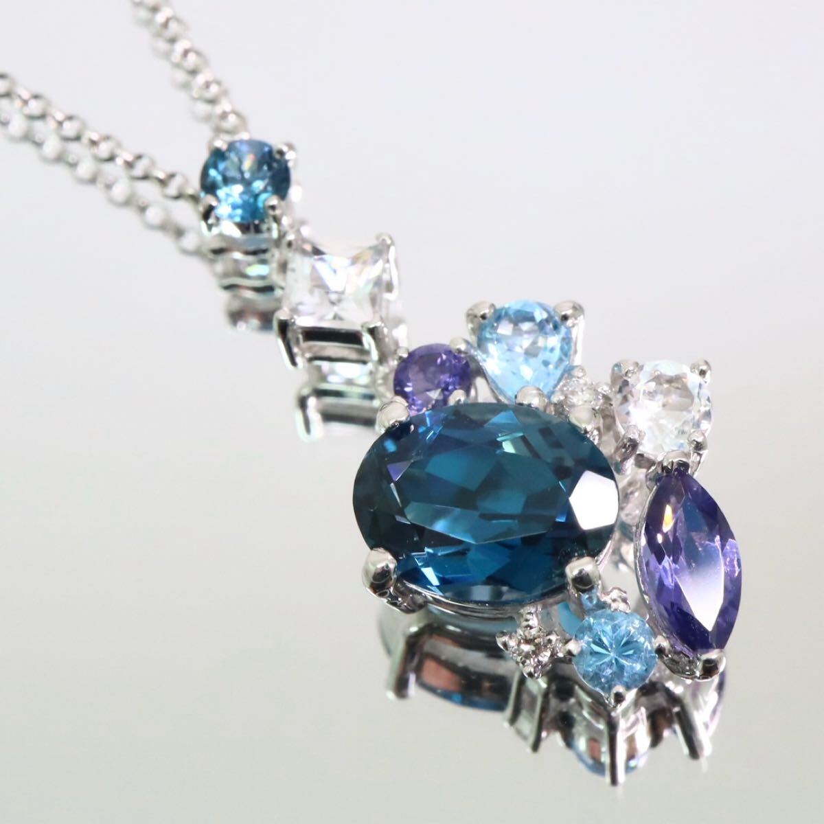 > K18WG!!ソ付き!!◆天然ブルートパーズネックレス◆N 約4.3g 約45.5cm マルチカラー topaz necklace jewelry ジュエリー EE5/ M31