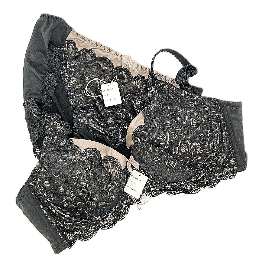 - CR16167 IB⑦【特価】新品 大きい ブラショーツセット F85/LL~3L 1セット ブラック 有名ブランド レース 花柄 脇高 レディース