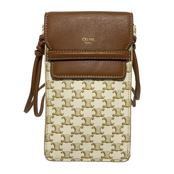 > セリーヌ CELINE ショルダーバッグ トリオンフキャンバス レザー 白×ブラウン スマホポシェット バッグ