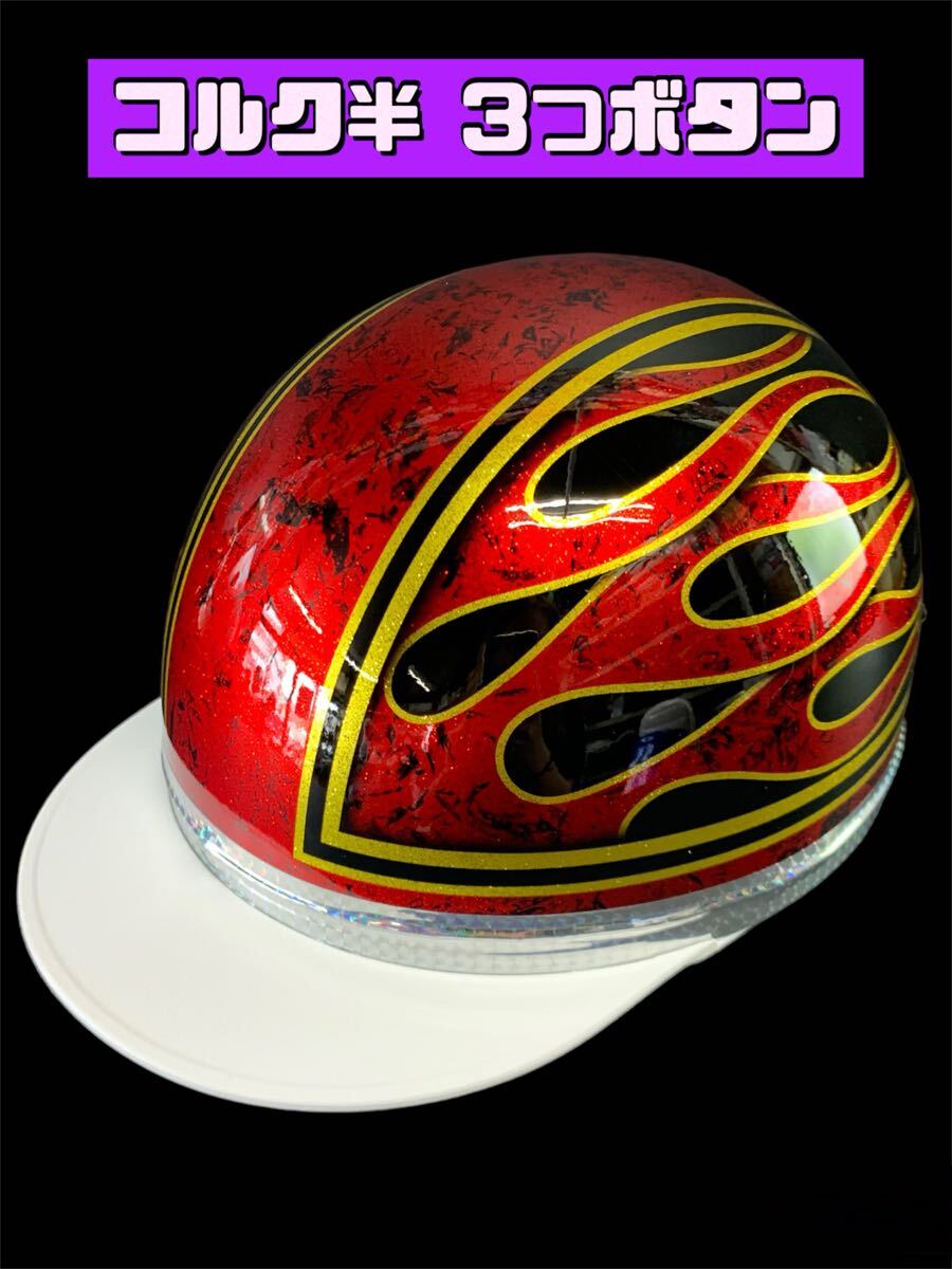 - コルク半 半キャップ ヘルメット 旧車 バイク ファイヤー フレア ラメベース